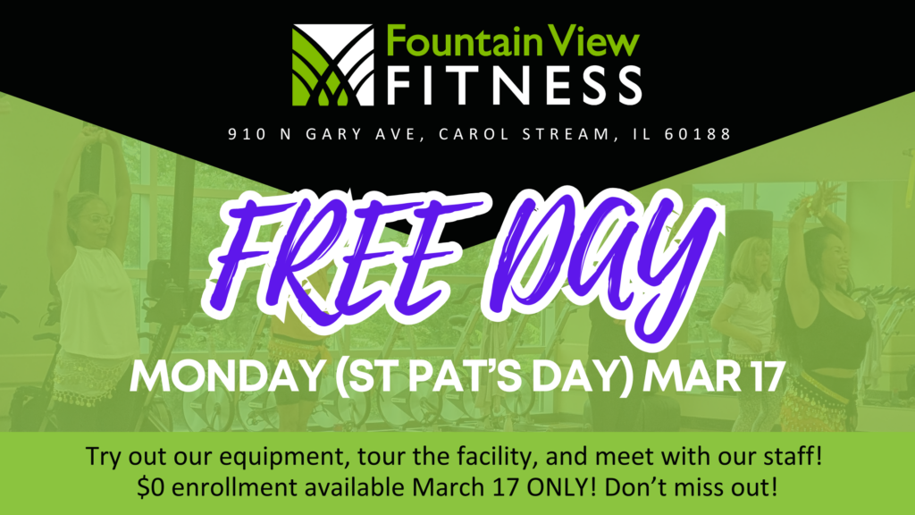 This St. Patrick’s Day, bring your workout partner and enjoy a FREE Day at the fitness center! Work out together, try any group fitness class, tour the facility, meet our staff, and receive a free equipment orientation.